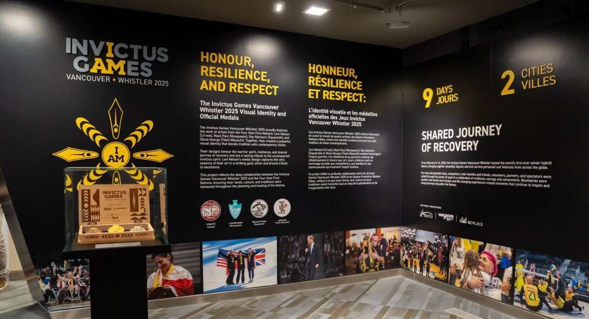 Located within the Coast Salish Gallery in the Harbour Concourse between the VCC’s West and East buildings, the space was created in partnership with PavCo and features a rich tapestry of photos, stories, and artifacts from the first ever winter hybrid Invictus Games.